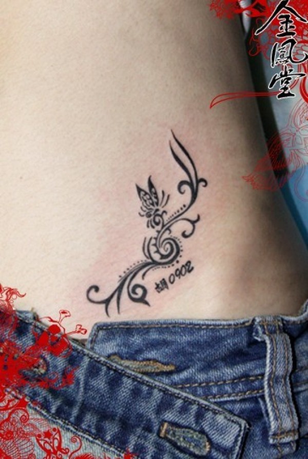 腰部彩色蝴蝶纹身_蝴蝶纹身图案大全_纹身图吧