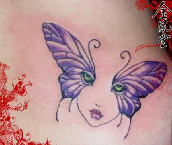 抽象蝴蝶脸纹身_蝴蝶纹身图案大全_纹身图吧