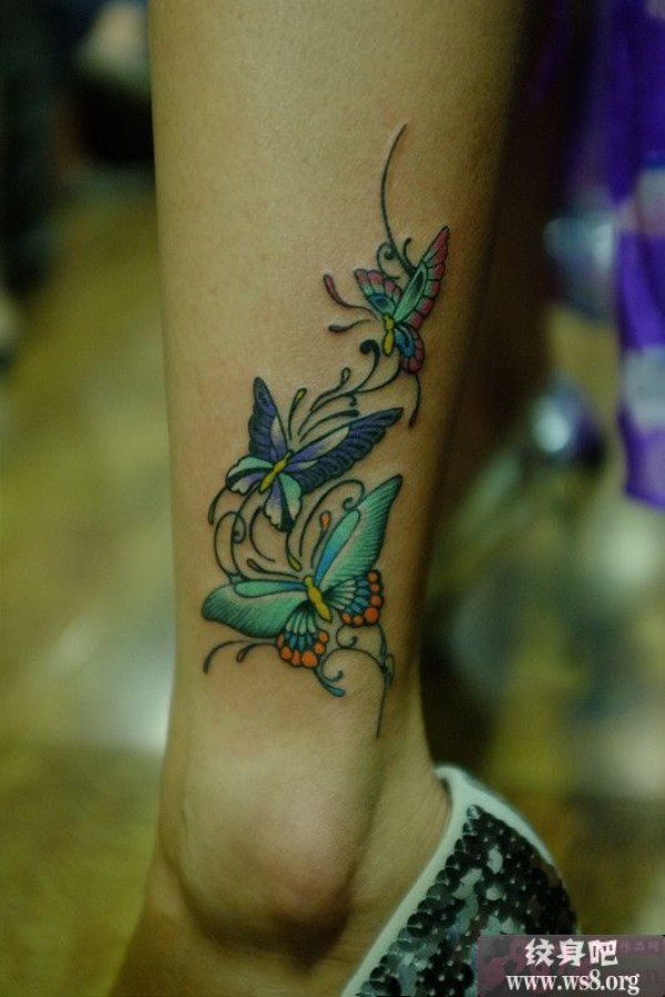 飞舞蝴蝶脚踝纹身图案_蝴蝶纹身图案大全_纹身图吧