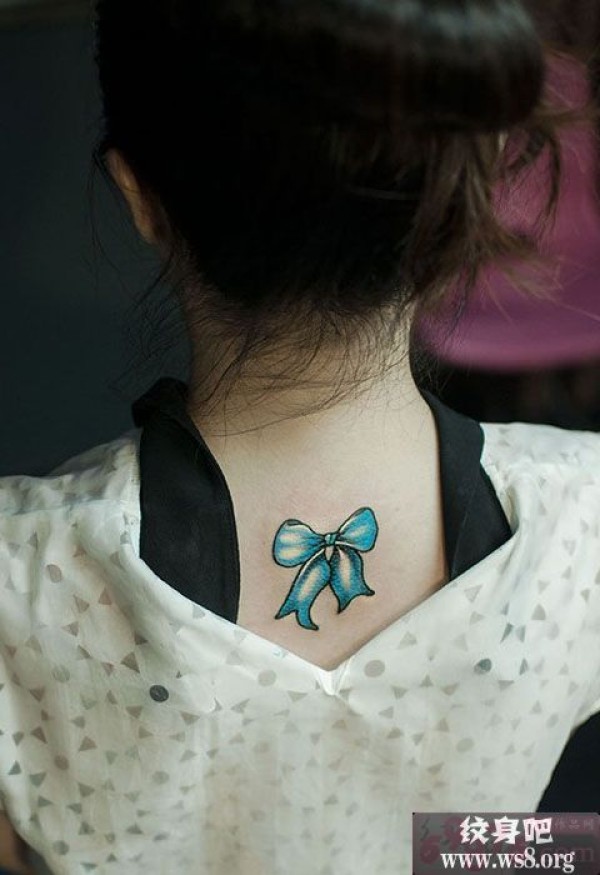 蓝色蝴蝶结后颈纹身图案_蝴蝶纹身图案大全_纹身图吧