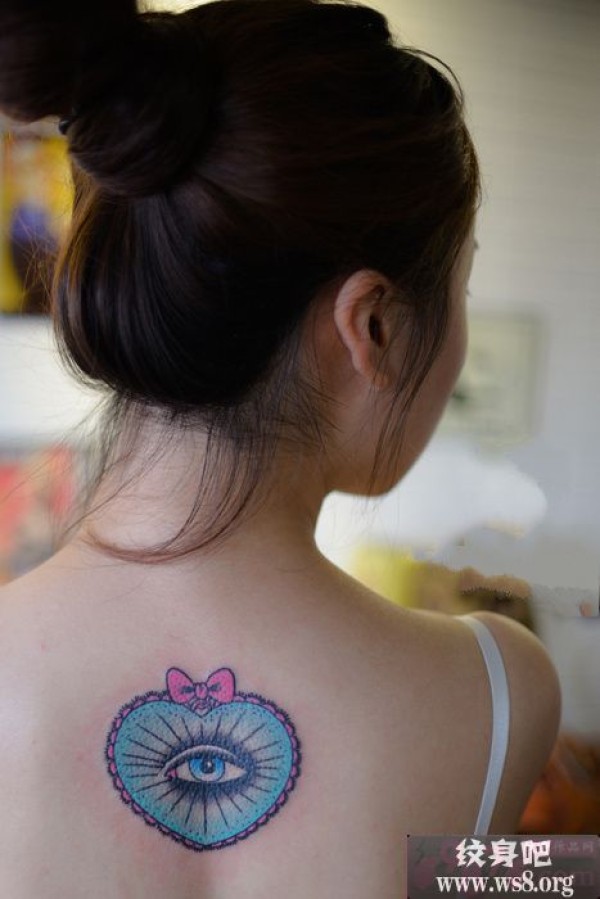 女生背上蝴蝶心眼睛图案_蝴蝶纹身图案大全_纹身图吧