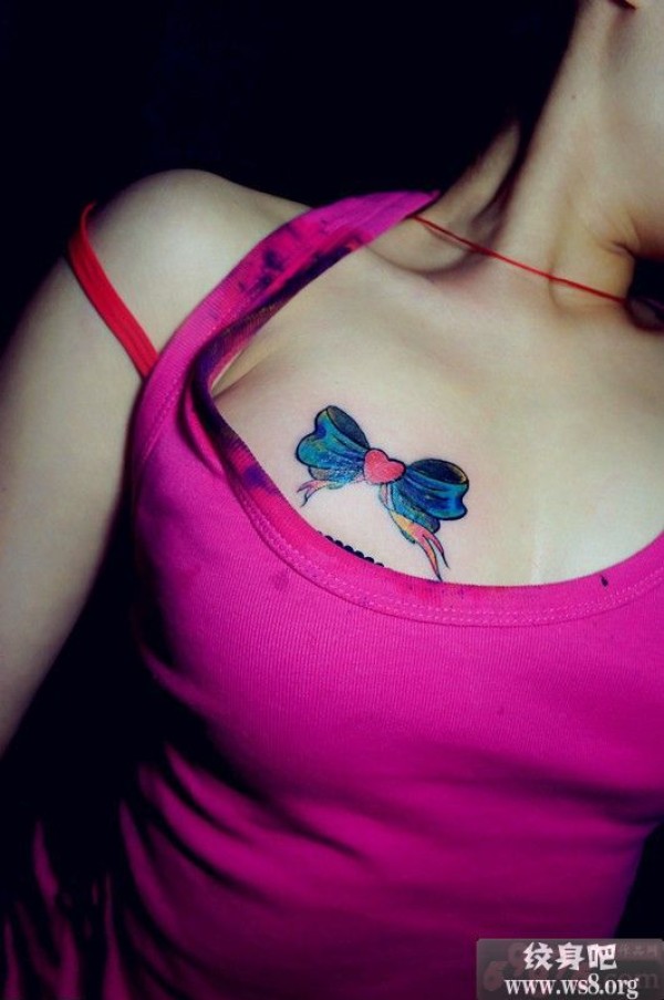 胸前彩色蝴蝶结纹身图案_蝴蝶纹身图案大全_纹身图吧
