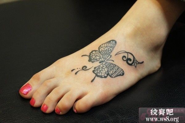 脚背蝴蝶时尚刺青图案图案_蝴蝶纹身图案大全_纹身图吧