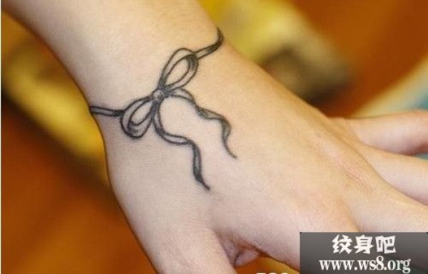 女孩手腕打结的蝴蝶结纹身图案_蝴蝶纹身图案大全_纹身图吧