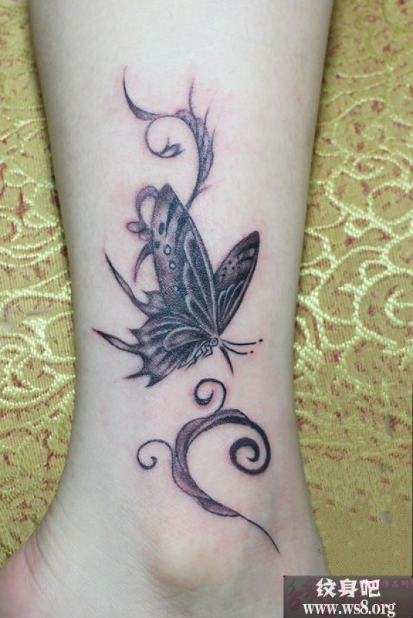 小腿飞舞蝴蝶时尚刺青图案_蝴蝶纹身图案大全_纹身图吧