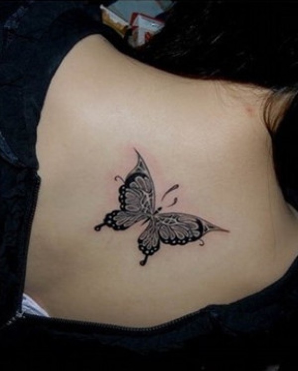 女性颈部蝴蝶刺青_蝴蝶纹身图案大全_纹身图吧