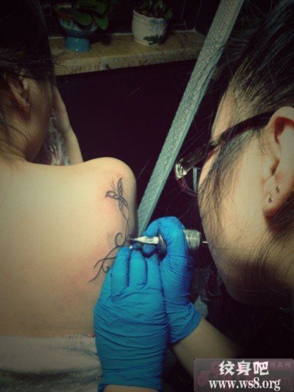 女生侧肩蝴蝶纹身制作现场图案_蝴蝶纹身图案大全_纹身图吧