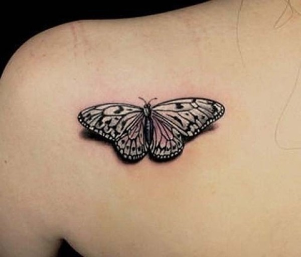 女性肩部蝴蝶刺青_蝴蝶纹身图案大全_纹身图吧
