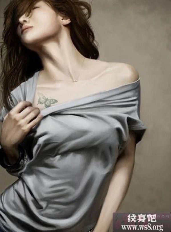 美艳女孩胸前蝴蝶纹身图案_蝴蝶纹身图案大全_纹身图吧