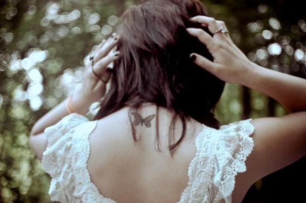 女性背部蝴蝶刺青_蝴蝶纹身图案大全_纹身图吧