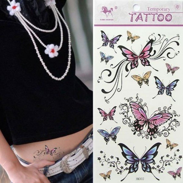 腰部彩色蝴蝶纹身_蝴蝶纹身图案大全_纹身图吧