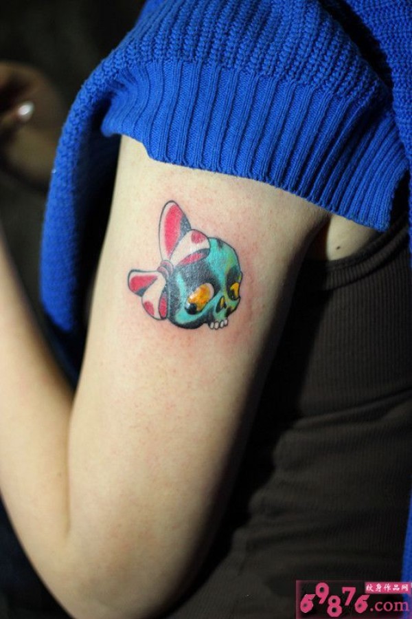 卡哇伊蝴蝶结骷髅纹身_蝴蝶纹身图案大全_纹身图吧