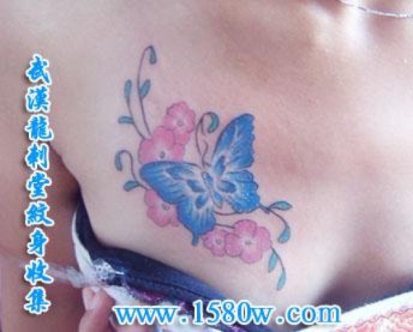 蝴蝶花纹身胸部纹身图片_蝴蝶纹身图案大全_纹身图吧
