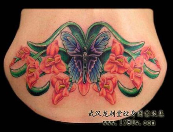 腰部彩色蝴蝶纹身_蝴蝶纹身图案大全_纹身图吧