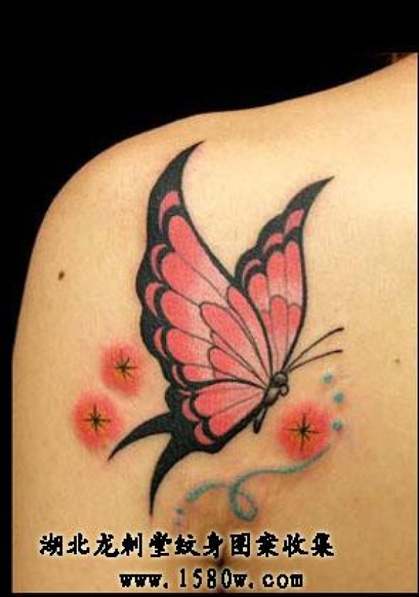 彩色蝴蝶纹身肩部纹身_蝴蝶纹身图案大全_纹身图吧