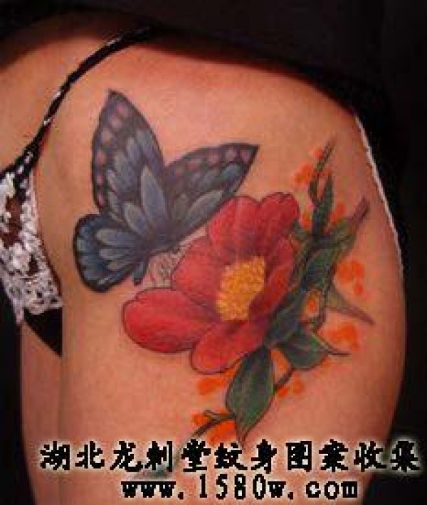 蝴蝶桃花纹身臀部纹身_蝴蝶纹身图案大全_纹身图吧