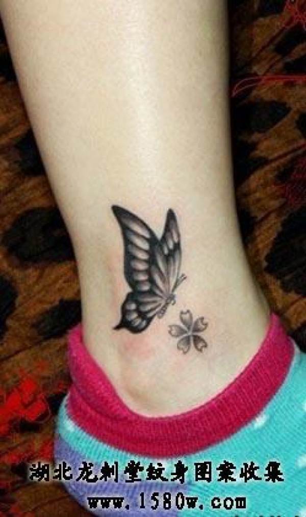 樱花蝴蝶纹身脚部纹身_蝴蝶纹身图案大全_纹身图吧