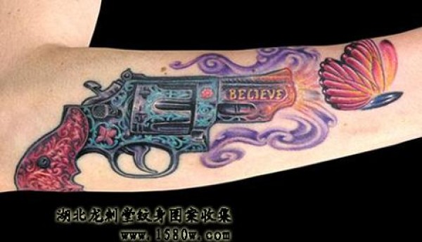 枪花蝴蝶纹身欧美纹身_蝴蝶纹身图案大全_纹身图吧