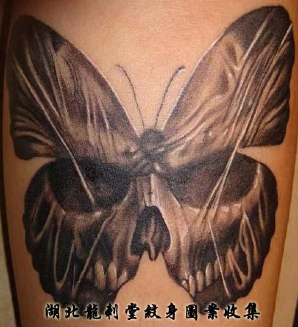 蝴蝶骷髅纹身图片_蝴蝶纹身图案大全_纹身图吧