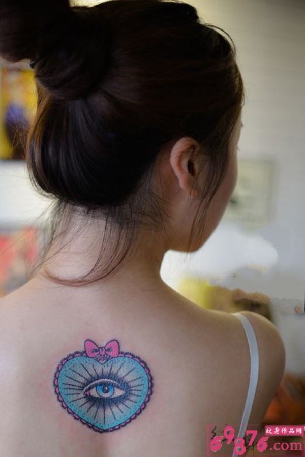 女生背上蝴蝶心眼睛纹身_蝴蝶纹身图案大全_纹身图吧