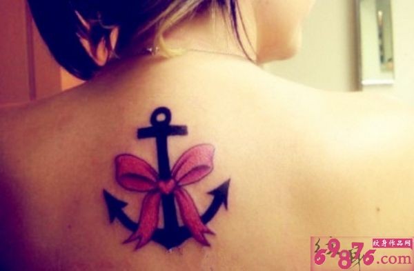 女生背上系蝴蝶结的锚纹身图片_蝴蝶纹身图案大全_纹身图吧