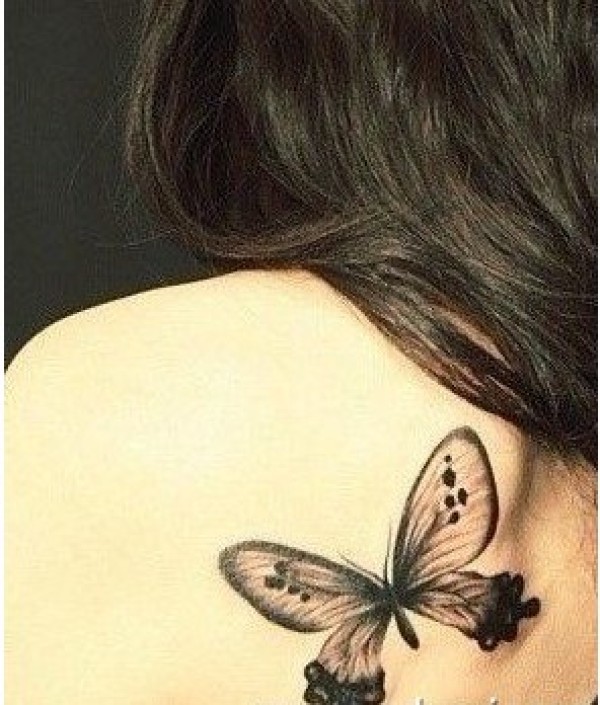 美女后背蝴蝶纹身_蝴蝶纹身图案大全_纹身图吧