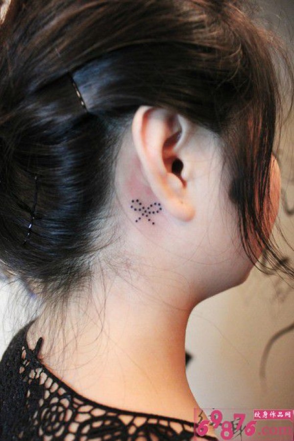清新点刺蝴蝶结耳后纹身_蝴蝶纹身图案大全_纹身图吧