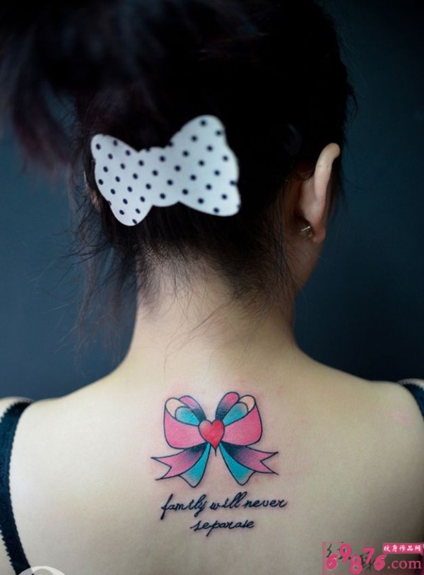 后颈小清新蝴蝶结纹身_蝴蝶纹身图案大全_纹身图吧