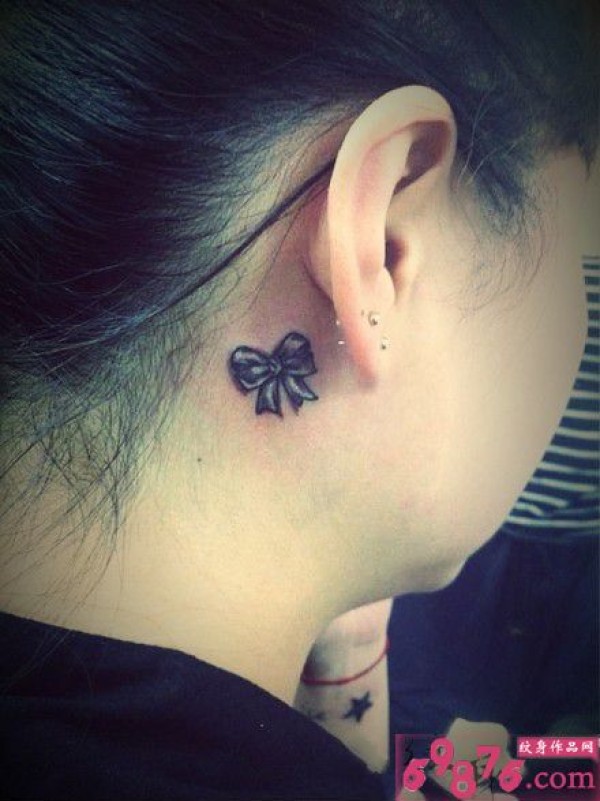 小清新耳后蝴蝶结纹身_蝴蝶纹身图案大全_纹身图吧