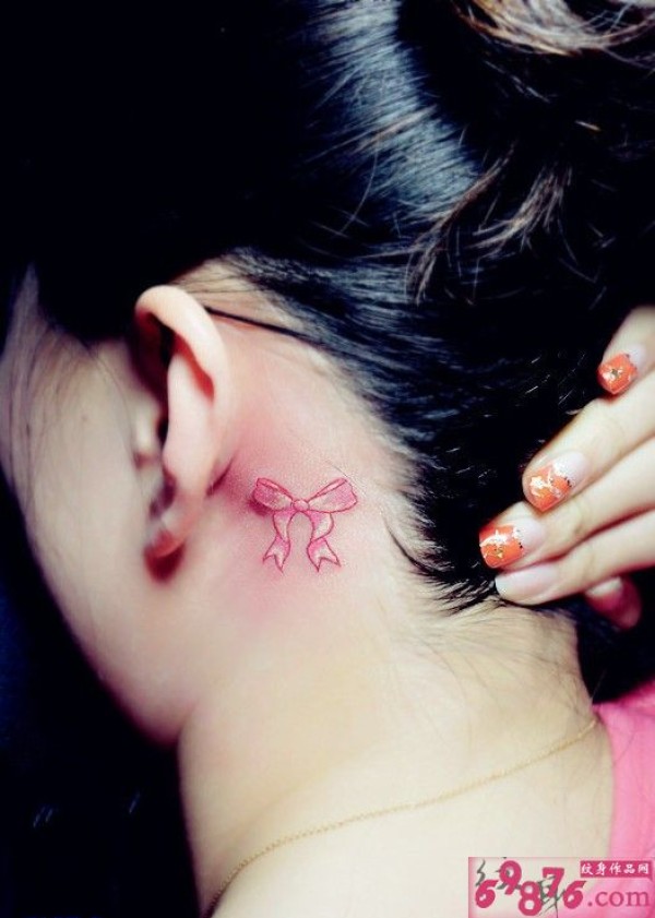 耳后粉色小蝴蝶结_蝴蝶纹身图案大全_纹身图吧