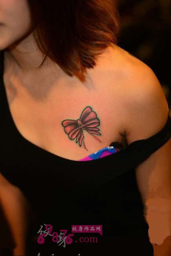 美女胸部粉色小蝴蝶结纹身_蝴蝶纹身图案大全_纹身图吧