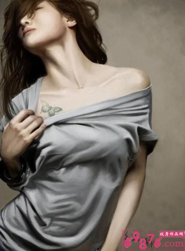 美艳女孩胸前蝴蝶纹身_蝴蝶纹身图案大全_纹身图吧