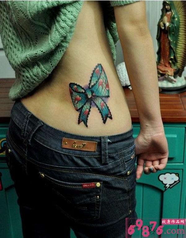 侧腰蓝色蝴蝶结刺青_蝴蝶纹身图案大全_纹身图吧