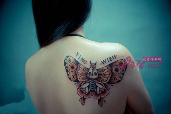 美女花蝴蝶香肩个性纹身_蝴蝶纹身图案大全_纹身图吧