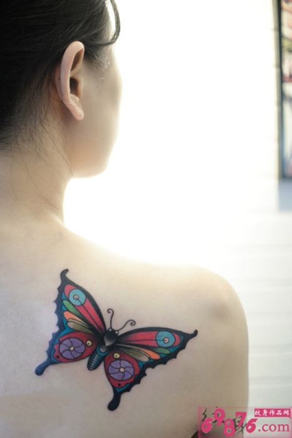蜕变蝴蝶唯美肩部纹身_蝴蝶纹身图案大全_纹身图吧