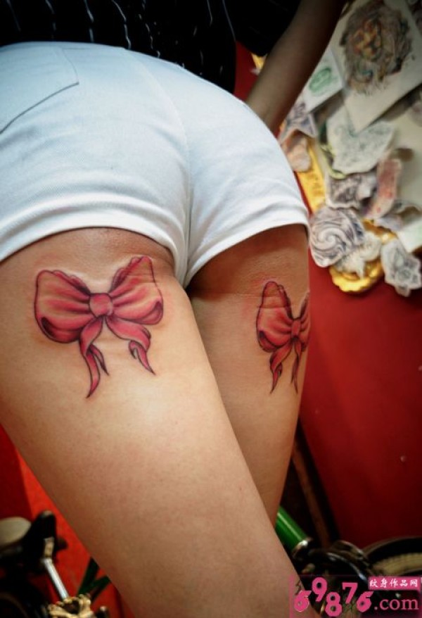 粉色蝴蝶结美腿纹身_蝴蝶纹身图案大全_纹身图吧
