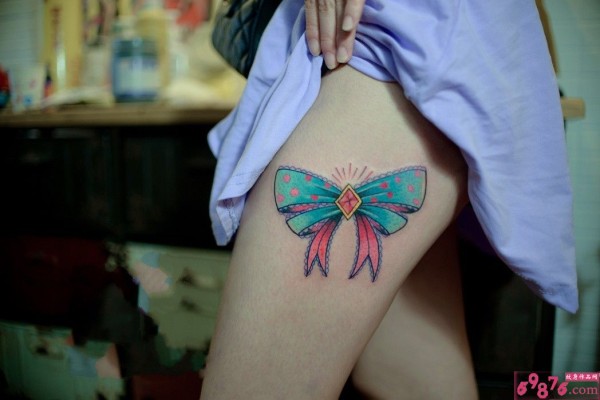 大腿小清新蝴蝶结纹身_蝴蝶纹身图案大全_纹身图吧