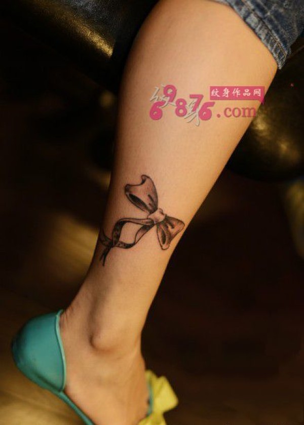 小清新蝴蝶结脚踝纹身_蝴蝶纹身图案大全_纹身图吧