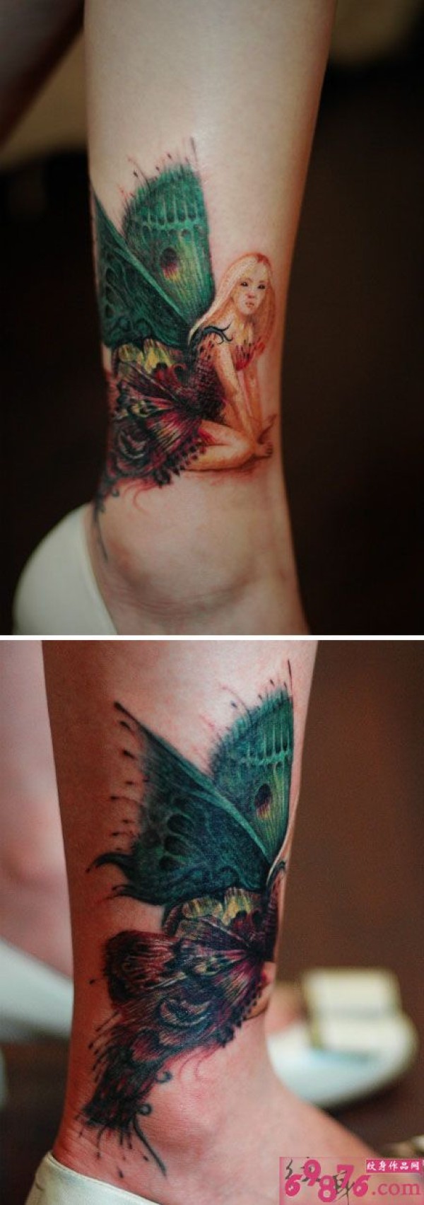 蝴蝶精灵时尚脚踝纹身_蝴蝶纹身图案大全_纹身图吧