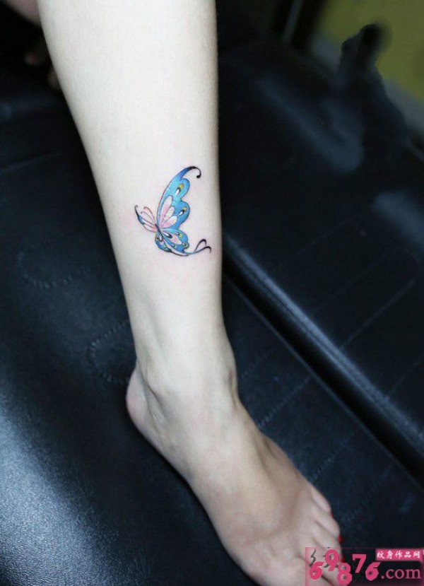 清新蝴蝶脚踝纹身_蝴蝶纹身图案大全_纹身图吧