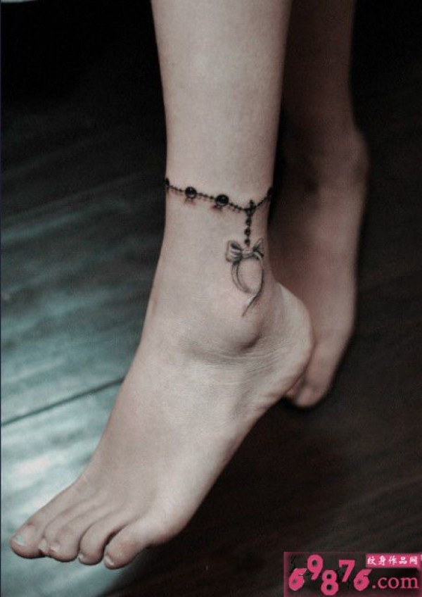 蝴蝶结脚链时尚纹身_蝴蝶纹身图案大全_纹身图吧