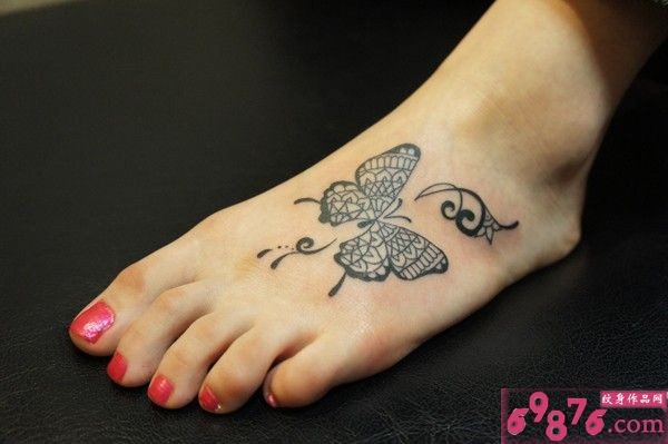 脚背蝴蝶时尚刺青图案_蝴蝶纹身图案大全_纹身图吧