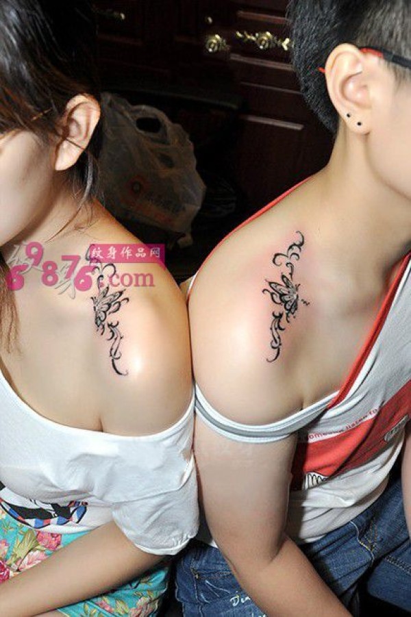 情侣肩部唯美蝴蝶时尚纹身_蝴蝶纹身图案大全_纹身图吧