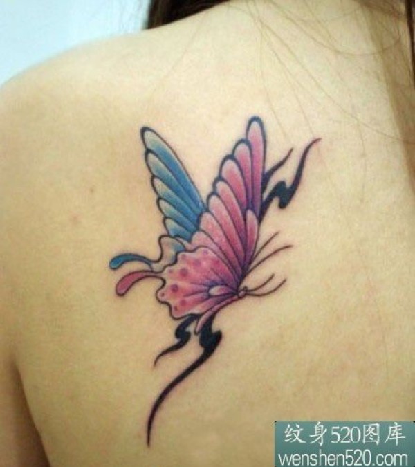美女肩胛上的小蝴蝶_蝴蝶纹身图案大全_纹身图吧