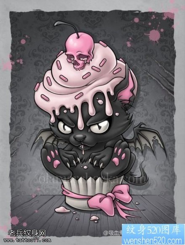 彩色小恶魔蛋糕蝴蝶结纹身图片_蝴蝶纹身图案大全_纹身图吧