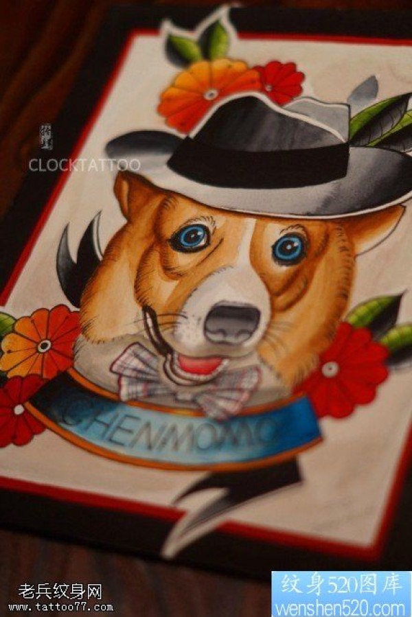 汪星人狗狗蝴蝶结字母纹身图片_蝴蝶纹身图案大全_纹身图吧