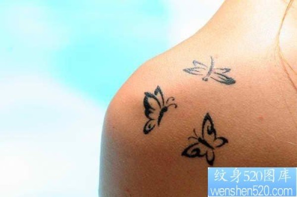 小清新女性肩部个性蝴蝶纹身图案_蝴蝶纹身图案大全_纹身图吧
