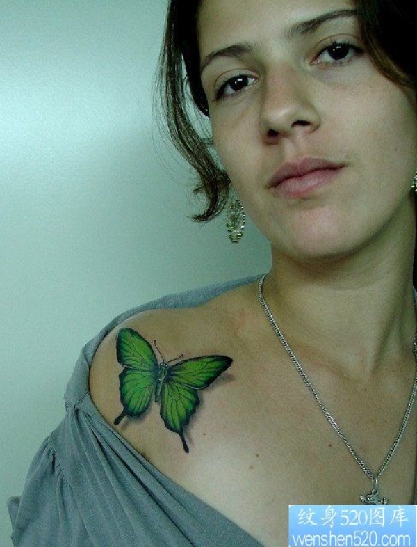 小清新女性肩部蝴蝶纹身图案_蝴蝶纹身图案大全_纹身图吧