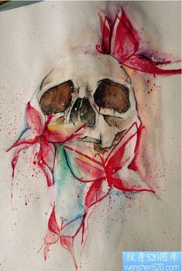 彩色骷髅蝴蝶纹身图案_蝴蝶纹身图案大全_纹身图吧