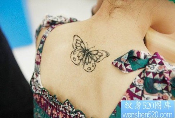 小清新女性背部蝴蝶纹身图案_蝴蝶纹身图案大全_纹身图吧